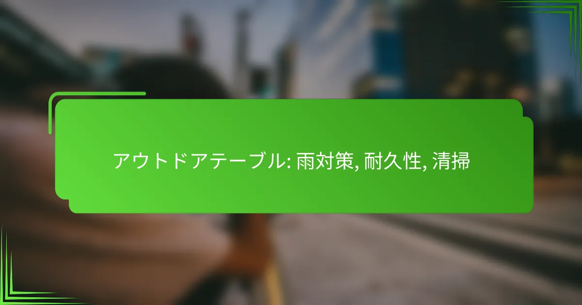 アウトドアテーブルを選ぶ際には、雨対策、耐久性、清掃方法が重要なポイントです。耐水性の素材を使用し、適切なアクセサリーを取り入れることで、雨による損傷を防ぎ、長持ちさせることができます。また、定期的な清掃を行うことで、美しい状態を維持し、耐久性を保つことができます。