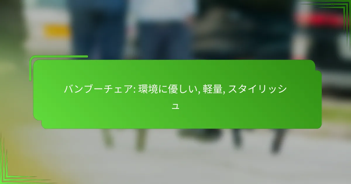 バンブーチェアは、竹の特性を活かした椅子で、耐久性と柔軟性を兼ね備えています。一般的に、竹は軽量でありながら強度が高く、持ち運びやすいのが特徴です。
